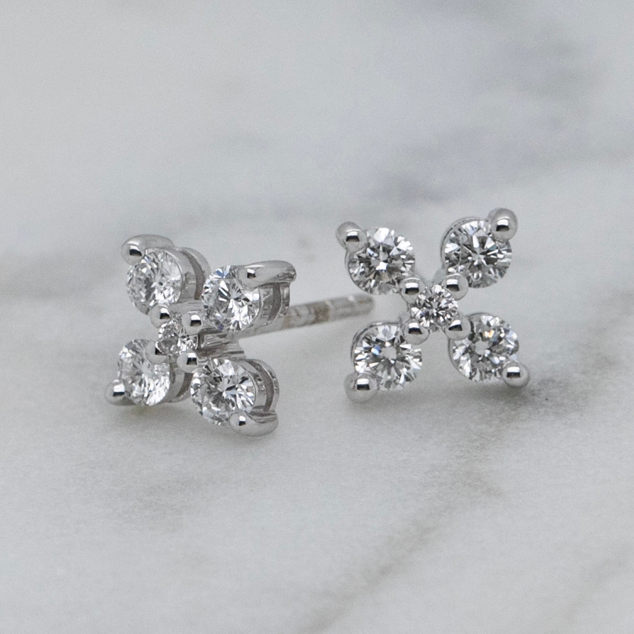 Chic and timeless, these elegant clover-shaped earrings are crafted in luxurious 18ct white gold and adorned with lab grown diamonds totalling 0.70ct. The sparkling diamonds trace the delicate clover outline, creating a refined symbol of luck and beauty.