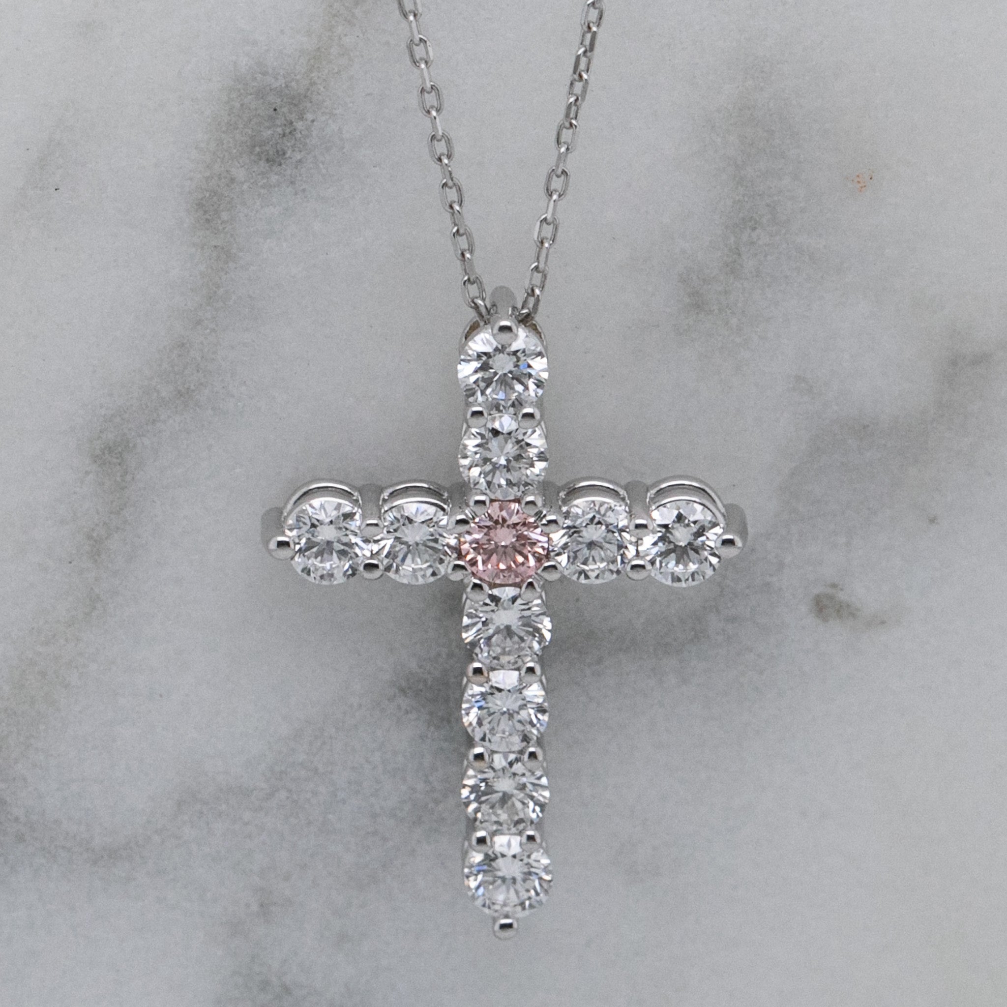 A modern expression of faith and elegance, this 18k white gold slider cross necklace features a harmonious blend of soft pink and brilliant white lab-grown diamonds. Designed to glide effortlessly along the chain, the cross has a sleek, contemporary silhouette that feels refined, meaningful, and beautifully wearable.