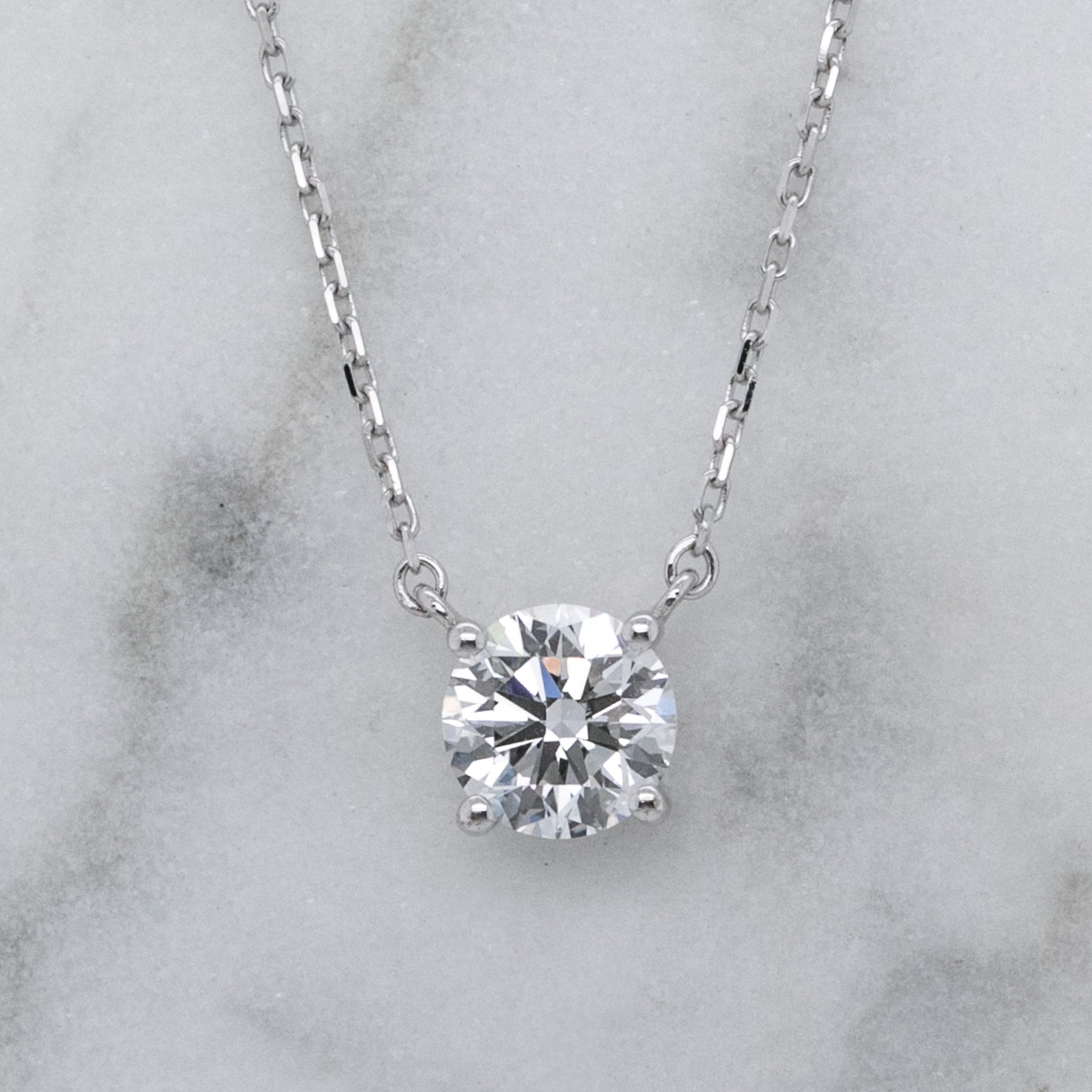 Timeless and elegant, this classic pendant showcases a dazzling 1.00ct round brilliant cut lab grown diamond, held securely in a refined four-claw setting that allows maximum light to enter the stone for exceptional sparkle.