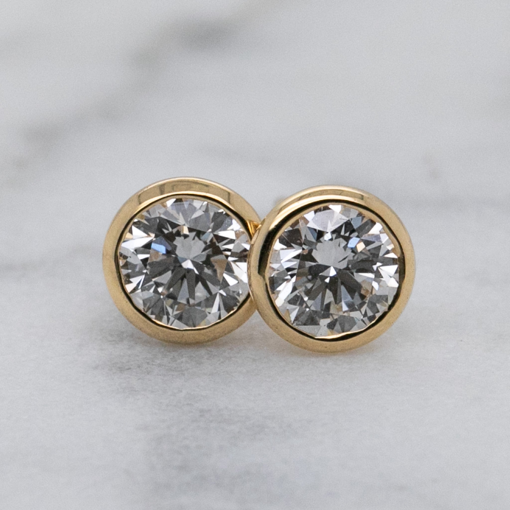 The sleek bezel setting frames each diamond in polished 18k yellow gold, creating a smooth, modern silhouette that enhances both security and shine. Lightweight at 1.79 grams, these studs are comfortable for all-day wear while delivering a refined, high-end look.