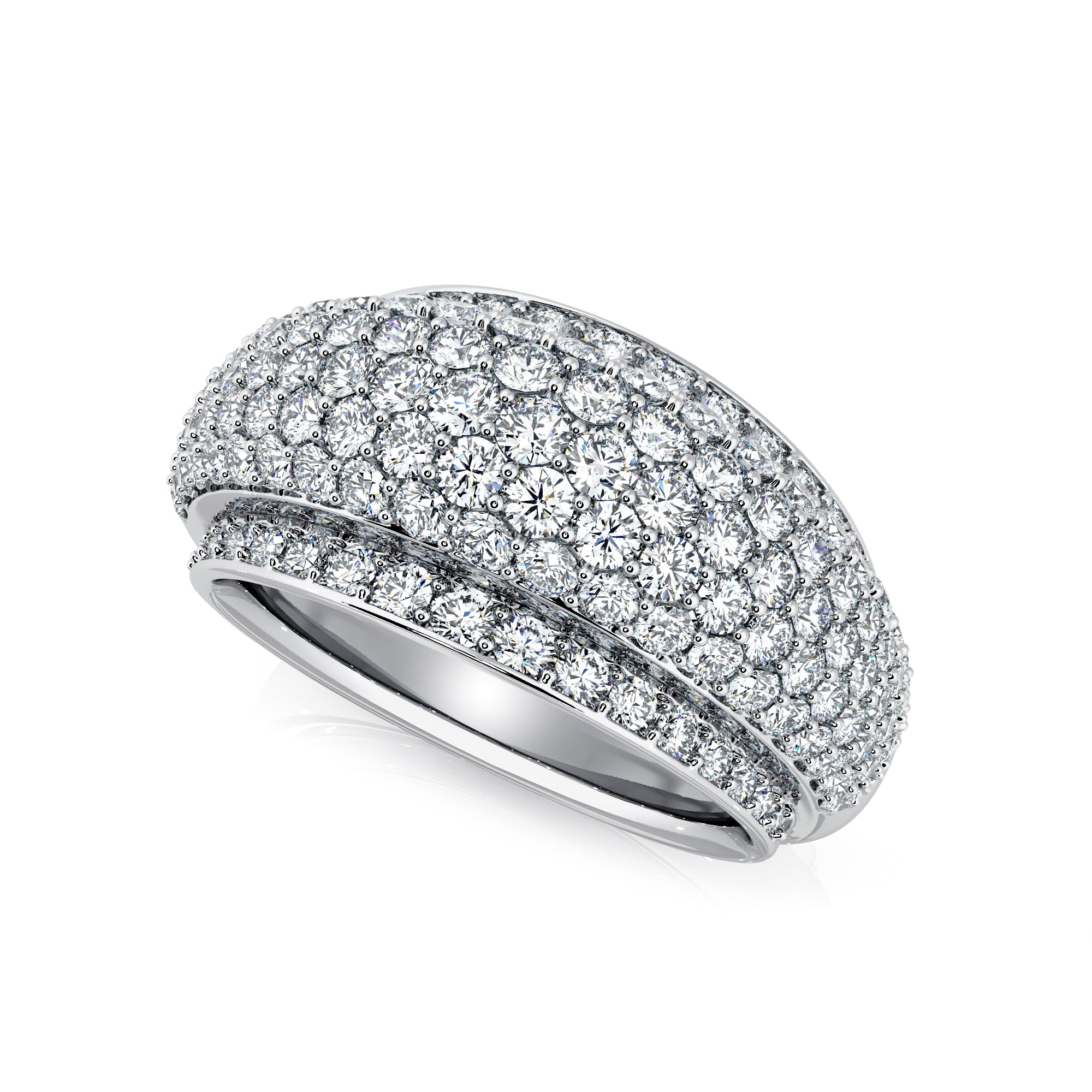 This decadent dress ring features a unique, pave-set diamond encrusted dome with over 1.50 carats of natural diamonds. A versatile addition to any jewellery collection.