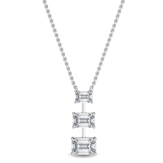 Indulge in an accessory that's as extraordinary as you, with our Emerald Cut Diamond Drop Pendant. Noted for its 3 sparkling emerald cut diamonds totalling 1.52ct, this elegantly-crafted pendant adds a stunning accent to any ensemble. The diamonds are horizontally set to add an intriguing twist to its traditional drop design. Make an impression wherever you go with this stunning piece of jewellery.