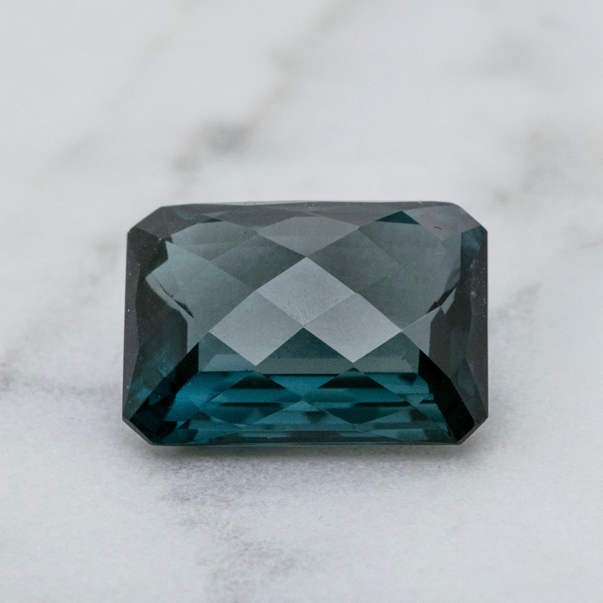 A striking gemstone of exceptional depth and brilliance, this 20.30-carat London blue topaz captivates with its intense, inky-blue hue. Cut in a radiant checkerboard style, the gem’s faceted surface reflects light from every angle, creating a dazzling play of sparkle and colour.