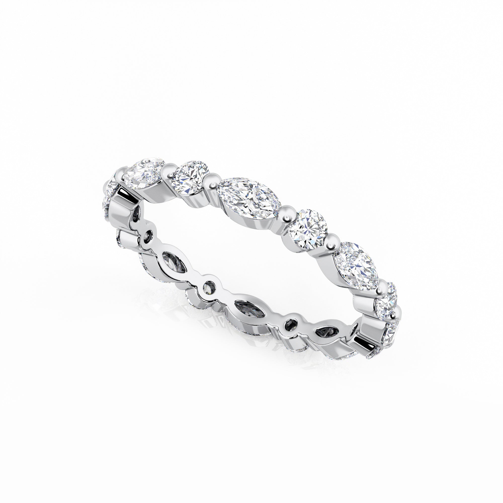 A stunning combination of alternating marquise and round diamonds set in polished gold, this contemporary wedding band is the epitome of elegance and sophistication. The carefully crafted design allows the diamonds to catch the light from every angle, creating a mesmerizing sparkle that is sure to turn heads. Whether worn alone or paired with an engagement ring, this timeless piece is the perfect symbol of eternal love and commitment.