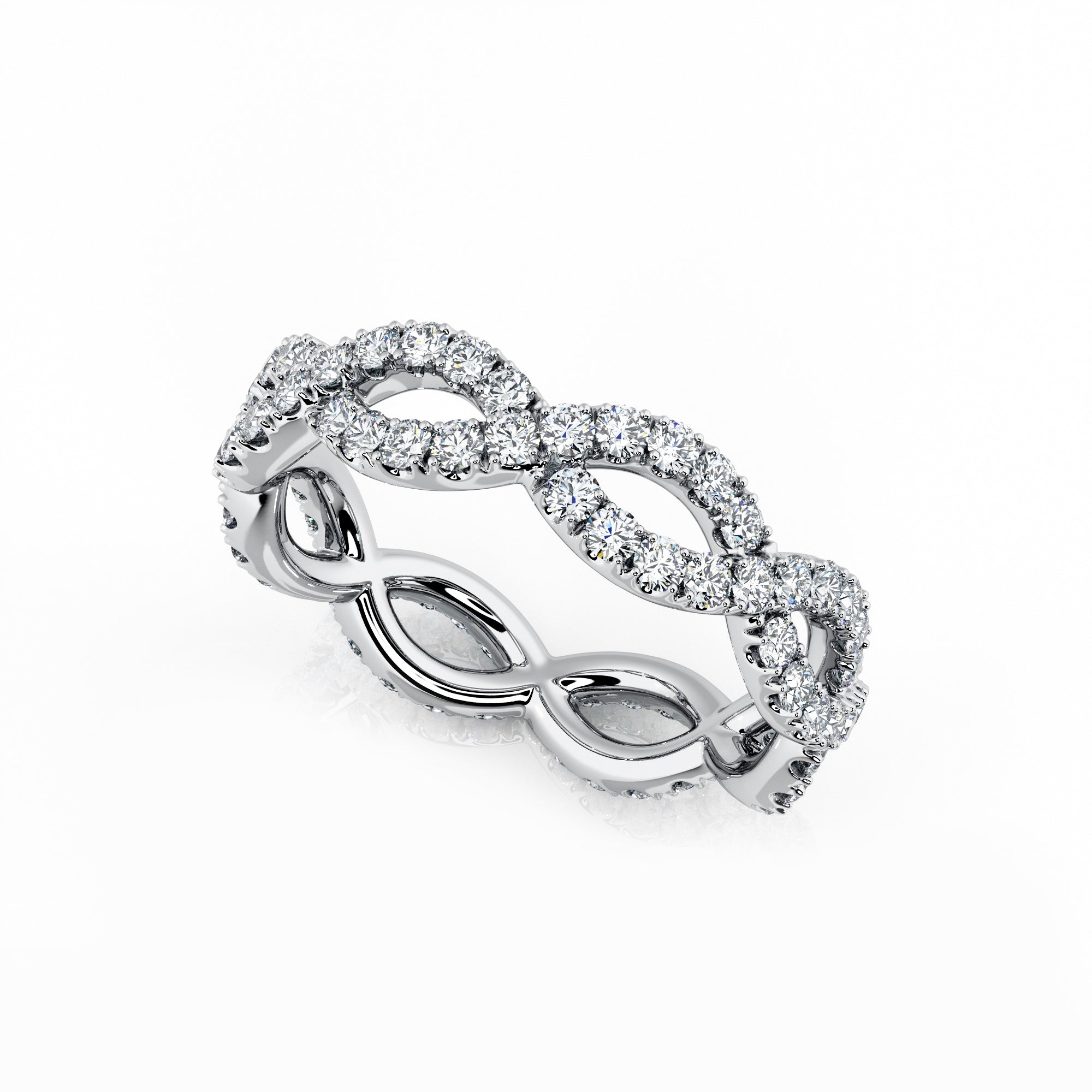 Make a statement of style with our extraordinary pavé-set diamond twist eternity band. Our talented craftsmen have created a uniquely elegant twisted design, encrusted with the finest round diamonds for a dazzling effect. The gold setting is complemented by the delicate sparkle of the diamonds, making this band the perfect accessory for any occasion.