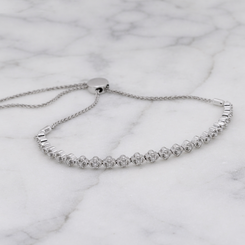 Delicate, elegant and effortlessly meaningful, this 18ct White Gold Adjustable Diamond Clover Bracelet is a timeless piece designed for everyday luxury.