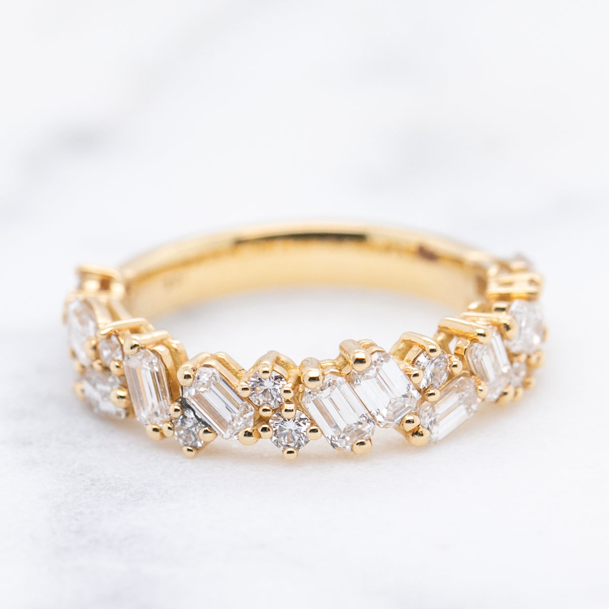 This exquisite dress ring is crafted with 18k yellow gold and features 1.75ct of lab grown diamonds. The perfect addition to any jewellery collection and a must-have for any fashion-forward individual. Available in finger size L.