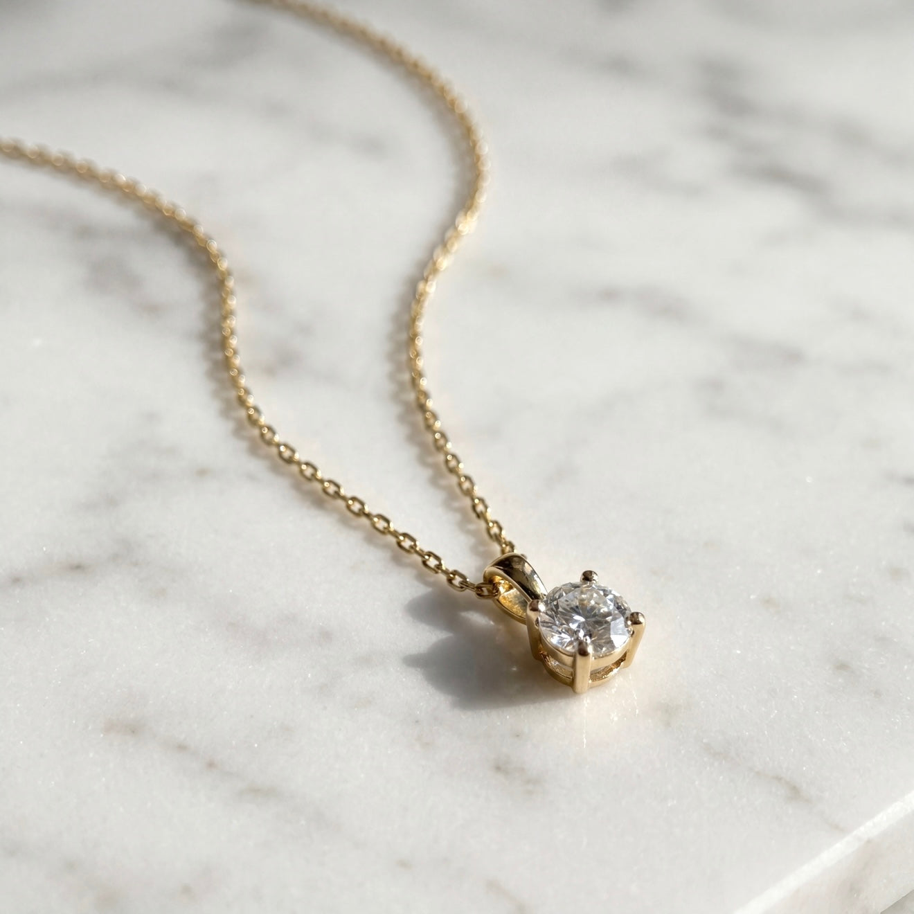 Timeless in its simplicity, this round lab grown diamond solitaire pendant is a beautifully refined piece designed to be worn and treasured every day. Set in 18k yellow gold, the pendant features a single brilliant round lab grown diamond weighing 0.50ct, offering elegant sparkle with a clean and classic finish.